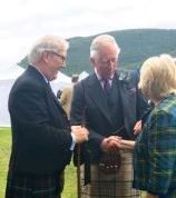 This me with HM King Charles, then Prince of Wales, with Joan Farquharson, Clan Vice President, at the Ballater highland Games in 2017.
