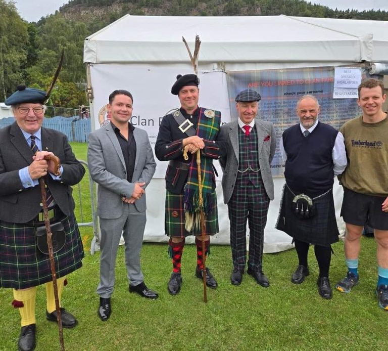 This photo is me with clan members from Argentina, Germany and Austria and the Clan Chief, at the Ballater highland Games in 2023.